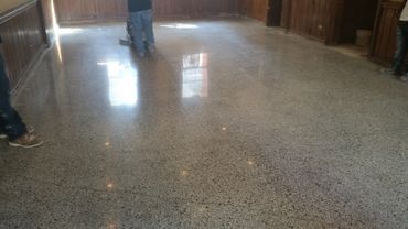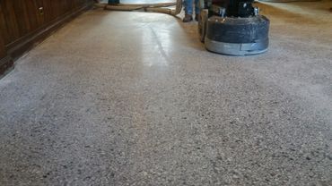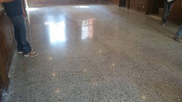 This is now becoming the new look that many commercial project are turning to because of the easy cleaning and minimal maintenance required. That the homeowner has now taken into their garage, patio and basement floor finishes. There are several levels of finish available starting with a salt and pepper look to a heavy open gravel look. The process is of several levels of grinding grits to open up the concrete pores on average starting with a 36 grit metal bond all the way up to 6000 copper bond done by a high speed burnisher for maximum shine. In the last stage of the polishing we use a hardener chemical that seals the pores and creates the shine for all to like and talk about.